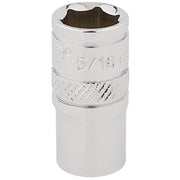 Expert Quality, 6 point socket manufactured from chrome vanadium steel that's hardened and tempered with a polished finish. Each socket has a knurled ring for extra grip.