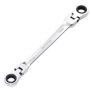 This Draper HI-TORQ® metric double flexible head ratchet ring spanner is forged from chrome vanadium steel that is hardened, tempered, fully polished and mirror chrome plated for corrosion protection. Both ring ends have a 180° flex head and 90-tooth ratchet mechanism, and the 4° movement enables use in tight spaces. The 12-point HI-TORQ® delivers maximum leverage by transferring torque to the flats and preventing slipping or damage to the fastener.
