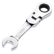 This Draper HI-TORQ® metric stubby flexible head ratchet combination spanner is forged from chrome vanadium steel that is hardened, tempered, fully polished and mirror chrome plated for corrosion protection. The open end is offset at 15°. The 180° flex head ring end has a 90-tooth ratchet mechanism allowing 4° movement, enabling use in tight spaces. The 12-point HI-TORQ® delivers maximum leverage by transferring torque to the flats and preventing slipping or damage to the fastener.