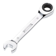 This Draper HI-TORQ® metric stubby ratchet combination spanner is forged from chrome vanadium steel that is hardened, tempered, fully polished and mirror chrome plated for corrosion protection. The open end is offset at 15°. The ring end has a 90-tooth ratchet mechanism allowing 4° movement, enabling use in tight spaces. The 12-point HI-TORQ® delivers maximum leverage by transferring torque to the flats and preventing slipping or damage to the fastener.
