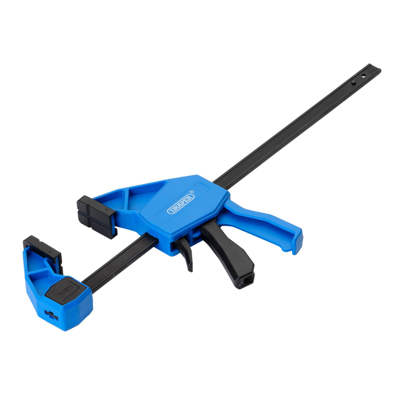 This medium-duty bar clamp is made from strong and durable engineering grade plastic. It is capable of evenly distributing up to 153kg of sustained clamping force. The robust I-Beam structure and C45 rail reduces unwanted bending. The TPU protective cushions safeguard the workpiece from marking and damage. One-handed operation is easy, thanks to the quick release trigger. There is also a quick change button to convert the clamp to a spreader. It is designed with long handles to enable better leverage for reaching higher pressure easily.