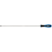 Extra long 450mm screwdrivers. The tanged blades prevent turning in the handle. Attached with a firmly rooted striking cap, allowing the handle to be struck without damage. Made from chrome vanadium steel that's hardened, tempered and satin chrome plated with a magnetic tip. The 'soft grip' handle delivers greater user comfort.
