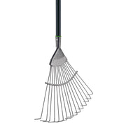 Sixteen flexible round steel tines with plastic coated finish. Head securely fixed to tubular steel handle. With black plastic hand grip with hang hole.