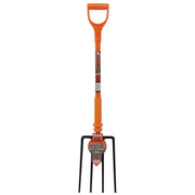 Expert Quality, fully insulated fork designed for working near live cable and wires. Individually tested to 10,000V, guaranteeing safe working on 1,000V and complying to the BS 8020 standards. Manufactured with an epoxy fibreglass core and attached to a fully enclosed insulated shaft with hand slip guard. The four extra strong prongs on the head are attached to a fully enclosed insulated shaft with hand slip guard. Each fork is Supplied with a certificate of conformity, which correlates with a unique traceability number embossed on the shaft.