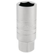 Expert Quality, 6 point deep socket with a rubber insert for plug protection and retention. Manufactured from chrome vanadium steel hardened and tempered with a micro satin finish. Socket length 65mm. Each socket has a knurled ring for extra grip.
