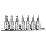 Ball-end Hex. Socket Bit Set, 3/8" Sq. Dr., 48mm (7 Piece)
