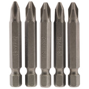 1 x Cross Slot Insert Bit, 1/4" Hex, 50mm Long, No.2 (Pack of 5)