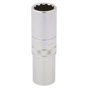 Expert Quality, 12 point deep socket manufactured from chrome vanadium steel that's hardened and tempered with a polished finish. Each socket has a knurled ring for extra grip.