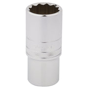 Expert Quality, 12 point deep socket manufactured from chrome vanadium steel that's hardened and tempered with a polished finish. Each socket has a knurled ring for extra grip.