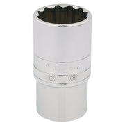 Expert Quality, 12 point deep socket manufactured from chrome vanadium steel that's hardened and tempered with a polished finish. Each socket has a knurled ring for extra grip.