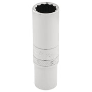Expert Quality, 12 point deep socket manufactured from chrome vanadium steel that's hardened and tempered with a polished finish. Each socket has a knurled ring for extra grip.