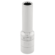 Expert Quality, 12 point deep socket manufactured from chrome vanadium steel that's hardened and tempered with a polished finish. Each socket has a knurled ring for extra grip.