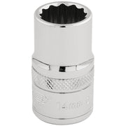 Expert Quality, 12 point socket manufactured from chrome vanadium steel that's hardened and tempered with a polished finish. Each socket has a knurled ring for extra grip.