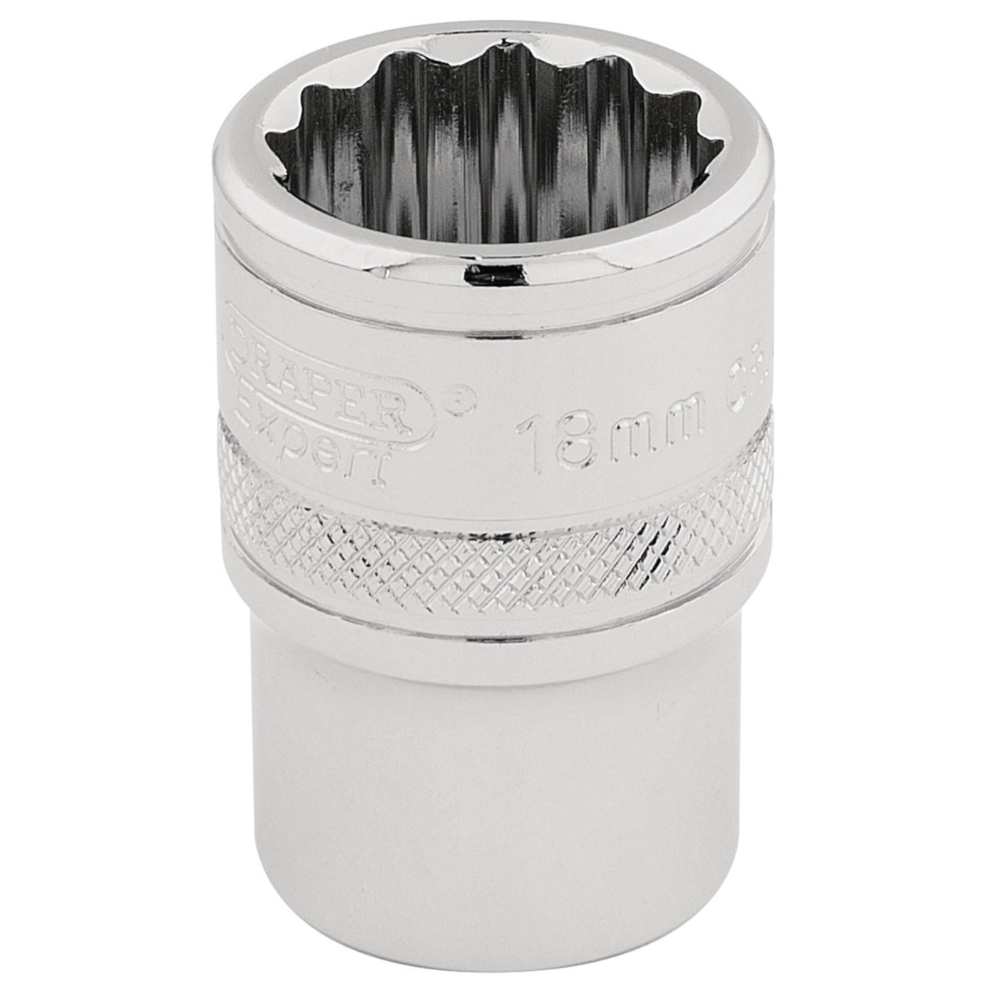 Expert Quality, 12 point socket manufactured from chrome vanadium steel that's hardened and tempered with a polished finish. Each socket has a knurled ring for extra grip.