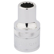 Expert Quality, 12 point socket manufactured from chrome vanadium steel that's hardened and tempered with a polished finish. Each socket has a knurled ring for extra grip.
