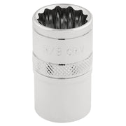 Expert Quality, 12 point socket manufactured from chrome vanadium steel that's hardened and tempered with a polished finish. Each socket has a knurled ring for extra grip.