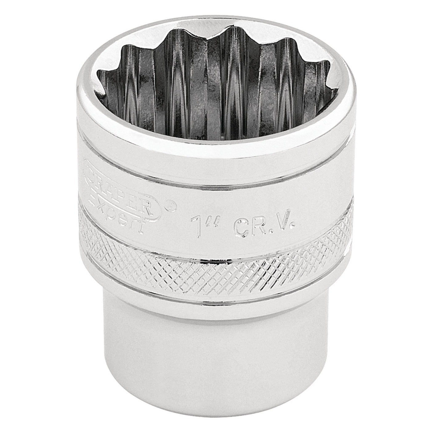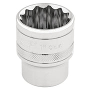 Expert Quality, 12 point socket manufactured from chrome vanadium steel that's hardened and tempered with a polished finish. Each socket has a knurled ring for extra grip.