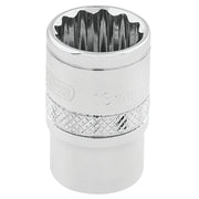 Expert Quality, 12 point socket manufactured from chrome vanadium steel that's hardened and tempered with a polished finish. Each socket has a knurled ring for extra grip.