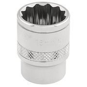 Expert Quality, 12 point socket manufactured from chrome vanadium steel that's hardened and tempered with a polished finish. Each socket has a knurled ring for extra grip.