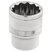 Expert Quality, 12 point socket manufactured from chrome vanadium steel that's hardened and tempered with a polished finish. Each socket has a knurled ring for extra grip.