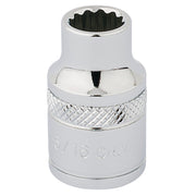 Expert Quality, 12 point socket manufactured from chrome vanadium steel that's hardened and tempered with a polished finish. Each socket has a knurled ring for extra grip.