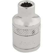 Expert Quality, 12 point socket manufactured from chrome vanadium steel that's hardened and tempered with a polished finish. Each socket has a knurled ring for extra grip.