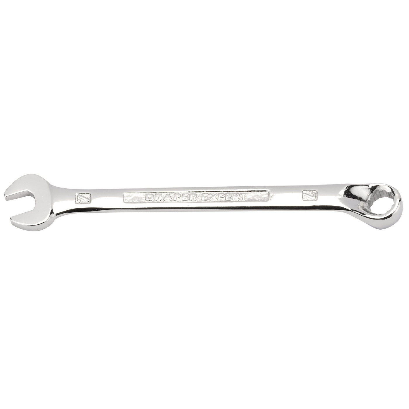 Expert Quality, with Draper Expert HI-TORQ® deep offset ring end cranked at 15°. Open end set at 15°. Long pattern forged from chrome vanadium steel, hardened, tempered, chrome plated and fully polished throughout.