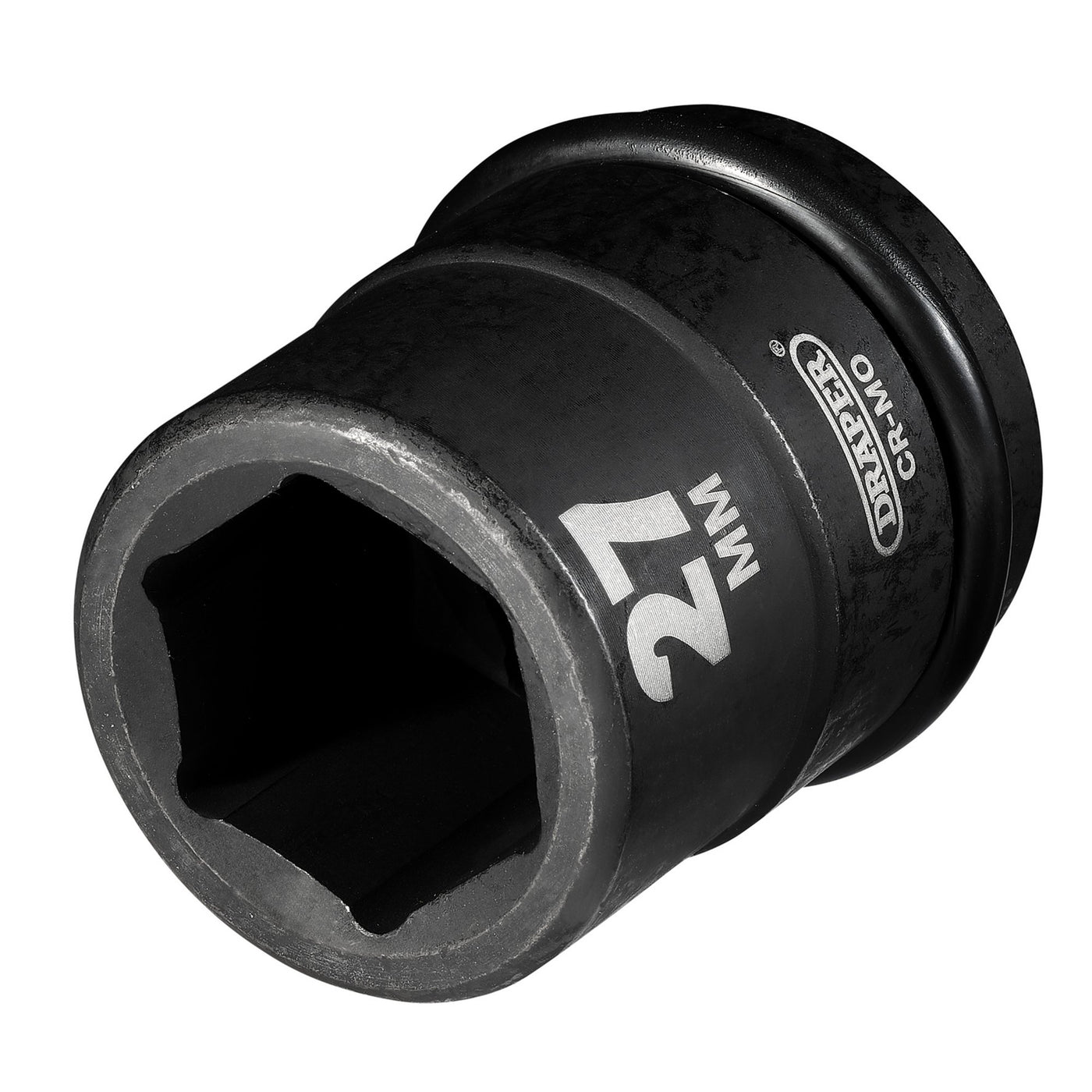 This Draper Hi-TORQ® 6-point impact socket is forged from hardened chrome molybdenum steel. Black phosphate finish for corrosion protection. For use with electric or pneumatic impact wrenches with a 3/4" drive. Supplied with ring and pin.