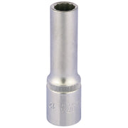 Professional Quality, socket manufactured from chrome vanadium steel hardened, tempered and chrome plated for corrosion protection. Chamfered end allows positive nut location and entry. Hole for driving accessory spring-loaded ball. Overall length 80mm.