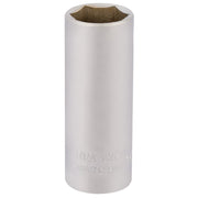 Professional Quality, socket manufactured from chrome vanadium steel hardened, tempered and chrome plated for corrosion protection. Chamfered end allows easy nut location and entry. Hole for driving accessory spring-loaded ball bearing. Overall length 50mm.