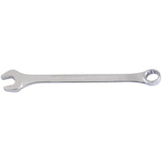Heavy duty long pattern, fully drop forged chrome vanadium steel hardened, tempered and chrome plated. Polished ring end offset at 15°. Jaw offset at 15°. Sold loose in polybags with barcode label.