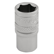 Expert Quality, 6 point socket manufactured from chrome vanadium steel hardened and tempered with a polished finish. Each socket has a knurled ring for extra grip.