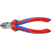 70 02 160 SB Diagonal Cutter narrow head style for use in confined areas. The indispensable diagonal cutter for all-round use. High-quality material and precise workmanship for long service life. Precision cutting edges for soft and hard wire. Clean cutting of thin copper wires, also at the cutting edge tips. Cutting edges additionally induction-hardened, cutting edge hardness approx. 62 HRC. with elongated cutting edge. With comfort handles: consisting of three ergonomic components for optimized handling and equipped with two KNIPEXtend interfaces for extensions. with bevel. - Cutting capacities soft wire (diameter): Ø 4.0mm- Cutting capacities medium hard wire (diameter): Ø 3.0mm- Cutting capacities hard wire (diameter): Ø 2.0mm