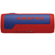 90 22 02 SB KNIPEX TwistCut® For the reliable and fast cutting of many plastic corrugated pipes with the universal capacity range from Ø 13 to 32 mm. for corrugated plastic pipes with ridge widths of up to 2.7 mm. No damage to the internal cables or pipes. Separate even softer, flexible plastic corrugated pipes: Apply little pressure on the TwistCut® when cutting to avoid the corrugated pipe to be deformed. Simple insertion, reliable and easy cutting without waste. Precise cut without damage thanks to unique arrangement of the cutters with side guide. Good accessibility thanks to slim design. With stripping blades for cross-sections 0.2 / 0.3 / 0.8 / 1.5 / 2.5 / 4.0 mm². Location ridges (patent pending) on the 1.5 and 2.5 mm² wire stripping blades for the fast insertion of cable. Internal length scale for consistent stripping of cable, legible for both right and left handed users. - Cutting capacities (diameter): Ø 13 – 32mm- Stripping capacity conductors and strands: 0.2 – 4mm²