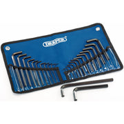 Thirteen metric keys standard length and twelve long reach imperial keys. Manufactured from chrome vanadium steel hardened and tempered. Packed in vinyl storage roll.