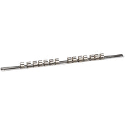 Socket retaining bars which can be wall mounted or used loose. Manufactured from carbon steel hardened and tempered with a polished finish. Clips made from nickel plated spring steel.