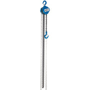 Expert Quality, ideal for the workshop or factory use. The chain hoist has a triple spur geared shaft and pinion with load braking and double pawls. The compact gear housing allows use in areas of limited clearance. High quality welded chain with safety latches on the load hooks.