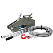 This high-strength manual puller is simple and safe to operate by one person. It has a compact design making it suitable for use in confined spaces. The heavy-duty steel mechanism inside safeguards a high-breaking force 20m steel wire rope, which can be used at any angle. There is a forward and reverse handle for extra control when pulling or releasing the load. The additional release lever saves time when adjusting rope length. The telescopic two-piece operating handle means it can be adjusted to suit any height (up to 800mm). There is a heavy-duty hook fitted to the end of the wire rope, which can be attached to the wire or securely fitted to the puller using the anchor pin. The aluminium casing is lightweight and it has a carry handle for ease of transportation.