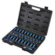 This comprehensive terminal tool kit is designed for the removal of most electrical terminals. It is compatible with most wiring connectors found in cars, trailers, light commercial vehicles, HGVs and tractors. Each terminal tool is made from stainless steel with chrome plating for corrosion protection and features a comfortable soft grip handle. Supplied inside a sturdy plastic storage case.