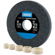 A high-quality, hard-wearing aluminium oxide bench grinding wheel with coarse grit. Suitable for general grinding, deburring and tool sharpening on non-ferrous metals and steel. Dry-cutting use only. Manufactured with a 31.75mm bore and supplied with 5 reduction rings enabling each bench grinding wheel to fit most bench grinders with a bore size between 12.7 – 31.75mm. Compatible with Draper Bench Grinder.