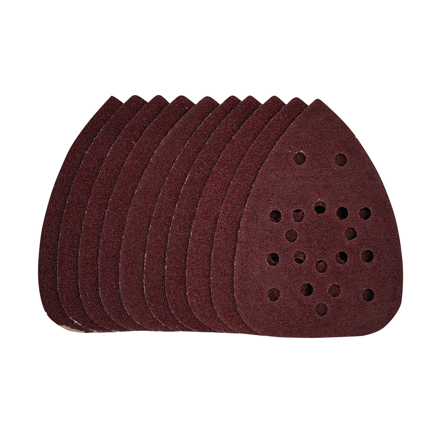 This pack of 140mm detail sanding sheets (40 grit) are made from premium quality aluminium oxide that is resin bonded to provide improved grain adhesion, anti-static qualities and long-lasting performance. The heavy duty E-Weight backing paper makes the sanding sheet more durable - able to withstand the toughest jobs. The hook and loop backing offers decent adhesion to facilitate the fast changing of sanding sheets. The 19 pre-punched 8mm holes improve dust extraction. Ideal for sanding and finishing wood, metal, aluminium alloy, painted surfaces, plastic and fillers. Compatible with most detail sanders with 140mm hook and loop backing pads including Stock No. 02063.