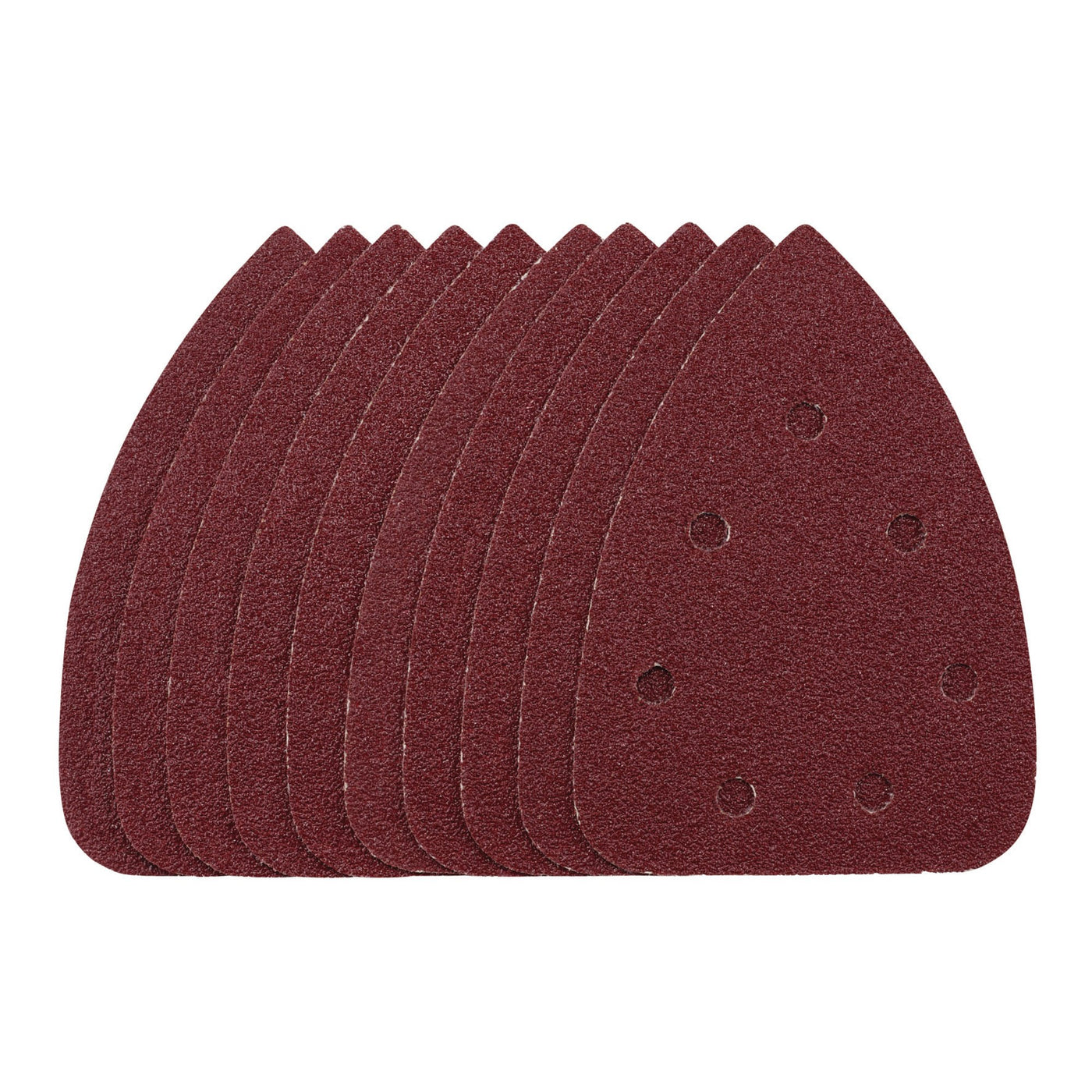This pack of 140mm detail sanding sheets (40 grit) are made from premium quality aluminium oxide that is resin bonded to provide improved grain adhesion, anti-static qualities and long-lasting performance. The heavy duty E-Weight backing paper makes the sanding sheet more durable - able to withstand the toughest jobs. The hook and loop backing offers decent adhesion to facilitate the fast changing of sanding sheets. The seven pre-punched 8mm holes improve dust extraction. Ideal for sanding and finishing wood, metal, aluminium alloy, painted surfaces, plastic and fillers. Compatible with most detail sanders with 140mm hook and loop backing pads including Stock No. 00608.