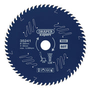 Draper Expert TCT Circular Saw Blade for Wood with PTFE Coating, 250 x 30mm, 60T