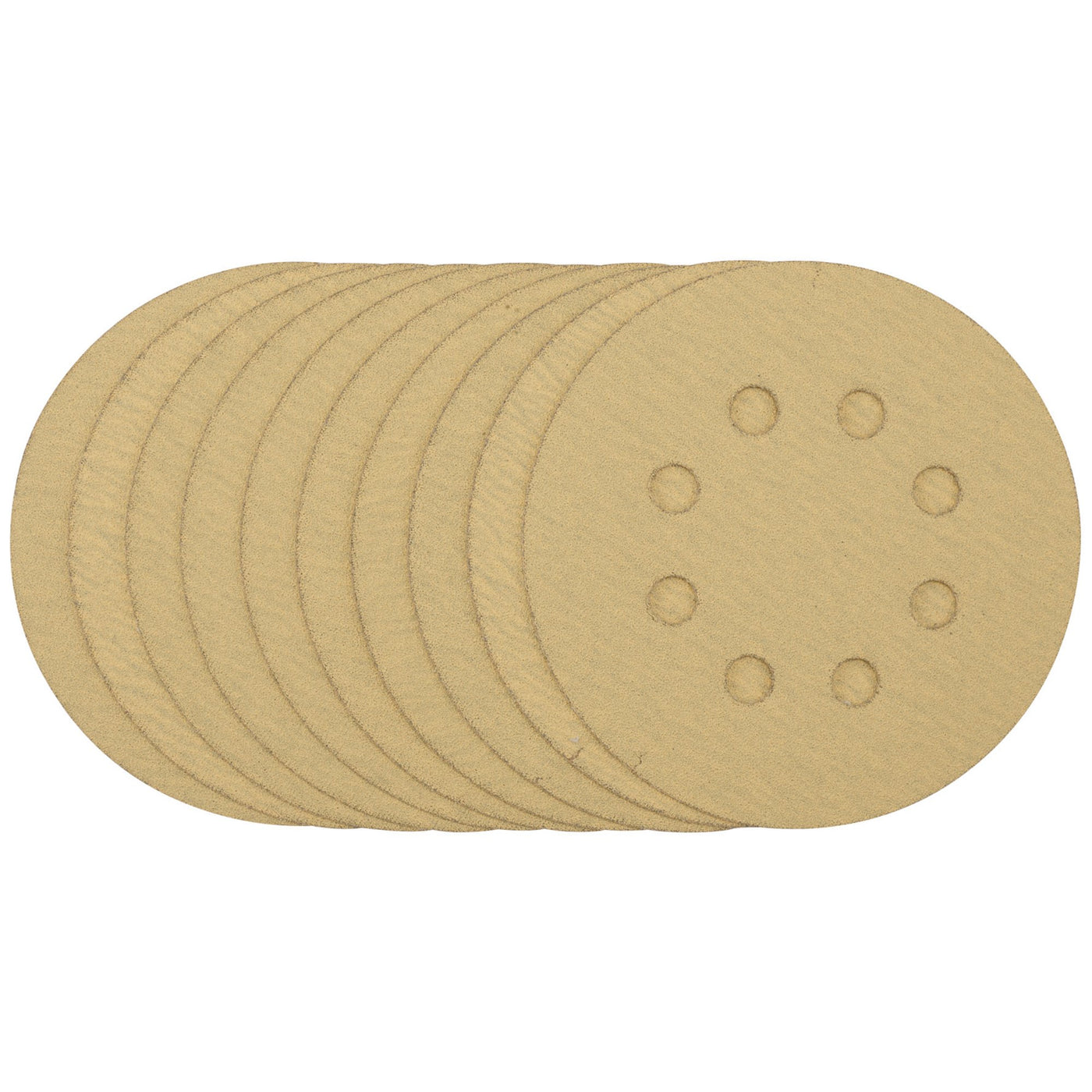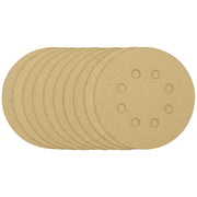 Gold Sanding Discs with Hook & Loop, 125mm, 120 Grit, 8 Dust Extraction Holes (Pack of 10)