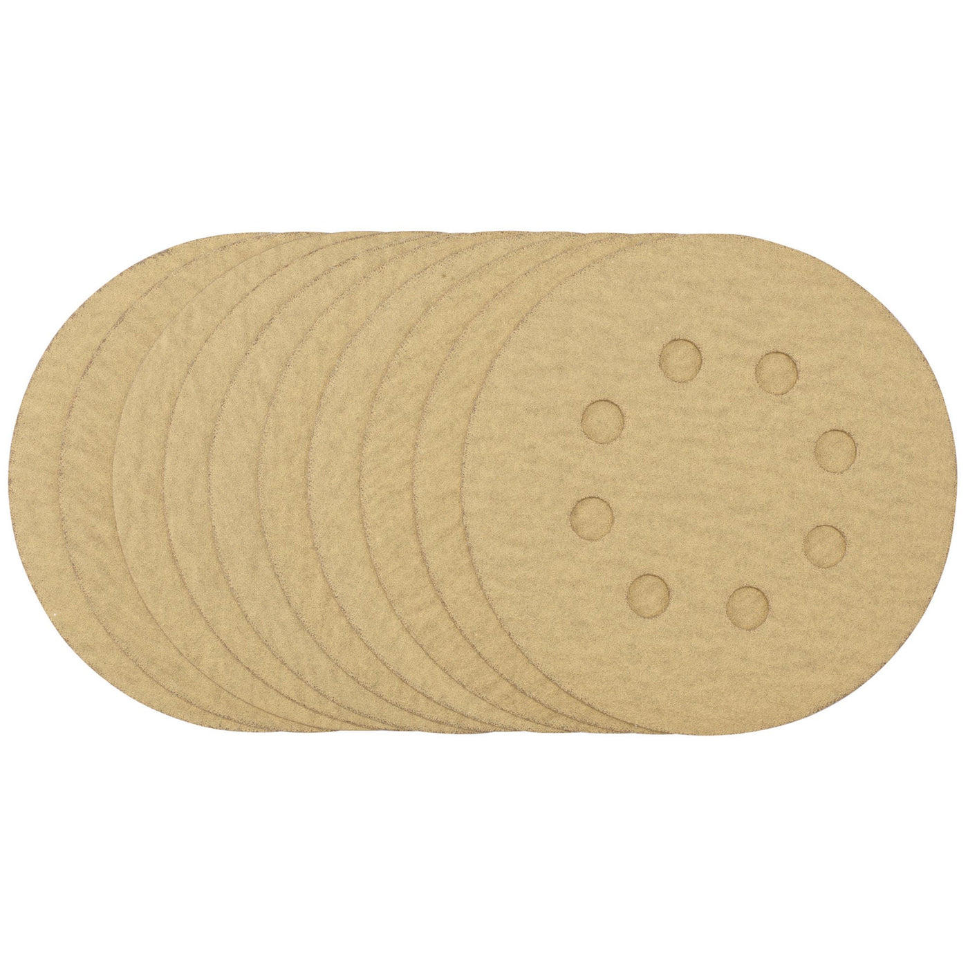 Gold Sanding Discs with Hook & Loop, 125mm, 180 Grit, 8 Dust Extraction Holes (Pack of 10)