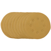 Gold Sanding Discs with Hook & Loop, 125mm, 240 Grit, 8 Dust Extraction Holes (Pack of 10)