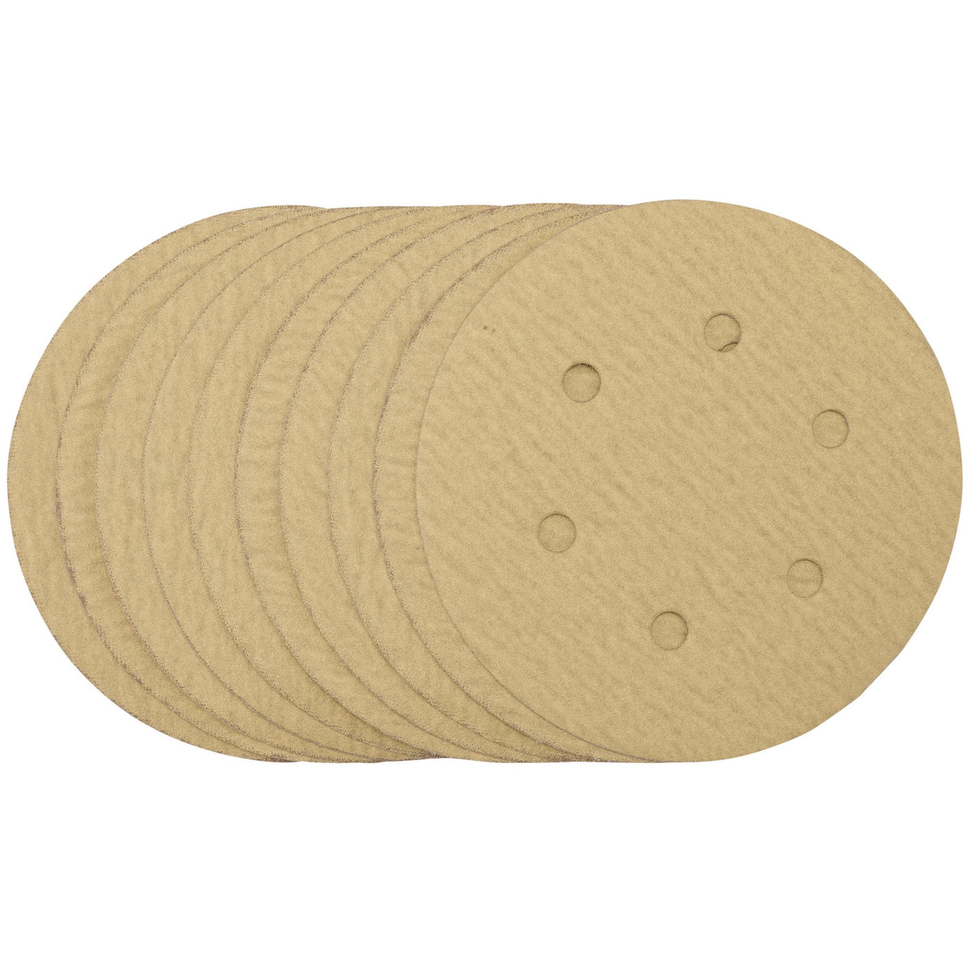 Gold Sanding Discs with Hook & Loop, 150mm, 180 Grit, 6 Dust Extraction Holes (Pack of 10)