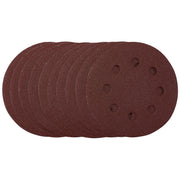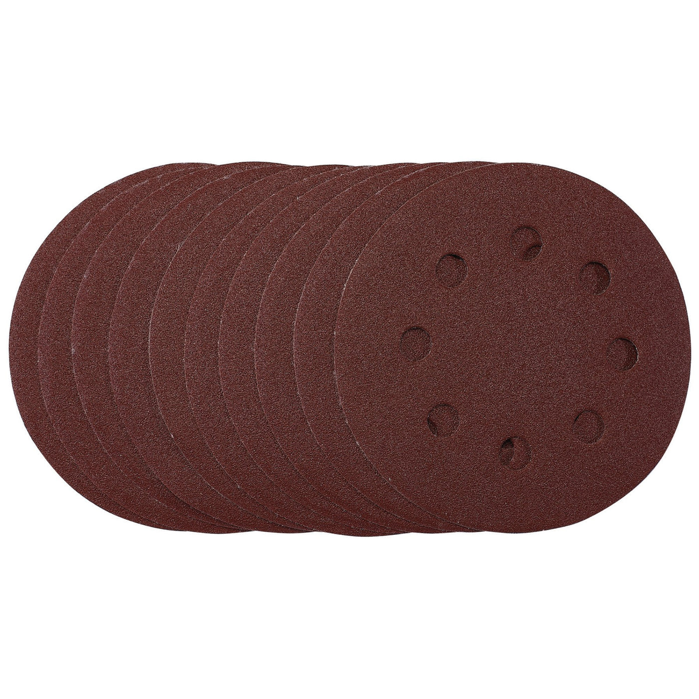 This pack of 10 premium quality aluminium oxide 115mm (120 grit) sanding discs are resin bonded to provide improved grain adhesion, anti-static qualities and long-lasting high performance. The heavy duty E-Weight backing paper makes the sanding disc more durable – able to withstand the toughest jobs. The hook and loop backing offers decent adhesion to facilitate the fast changing of sanding discs. The eight pre-punched 8mm holes improve the dust extraction during sanding. Ideal for sanding and finishing wood, metal, aluminium alloy, painted surfaces, plastic and fillers. Compatible with all 115mm orbital sanders hook and loop backing pads.