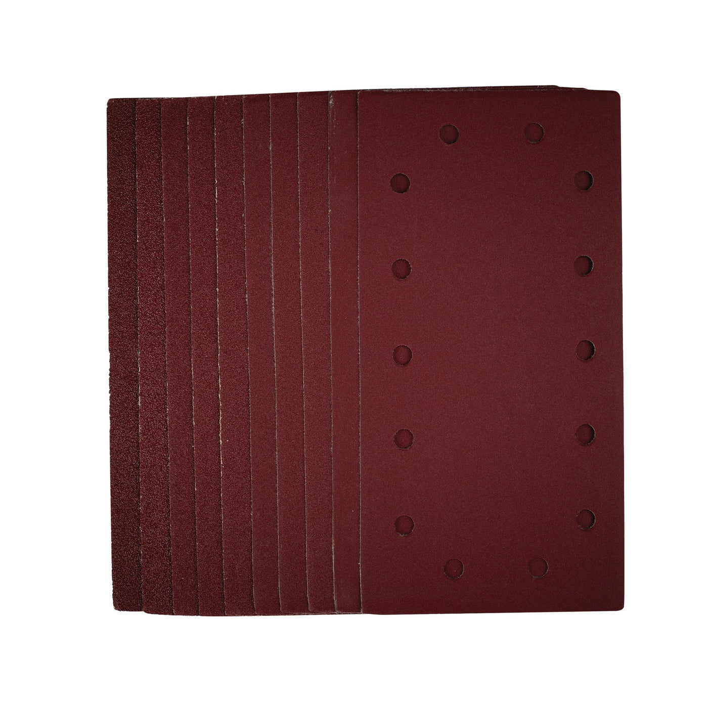 This pack of 1/2 sanding sheets (115 x 230mm) of assorted grit are made from premium quality aluminium oxide that is resin bonded to provide improved grain adhesion, anti-static qualities and long-lasting performance. The heavy duty E-Weight backing paper makes the sanding sheet more durable - able to withstand the toughest jobs. The hook and loop backing offers decent adhesion to facilitate the fast changing of sanding sheets. The 14 pre-punched 8mm holes improve dust extraction. Ideal for sanding and finishing wood, metal, aluminium alloy, painted surfaces, plastic and fillers. Compatible with most 1/2 sanders with hook and loop including Stock No. 57941.