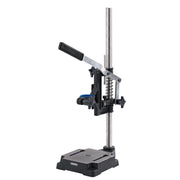 For use with hand held electric drills with collar diameters of 43mm or 38mm with supplied reducing bush. Solid column bar and sturdy base with slots for fitting machine vice. Features depth adjustment scale and stop.